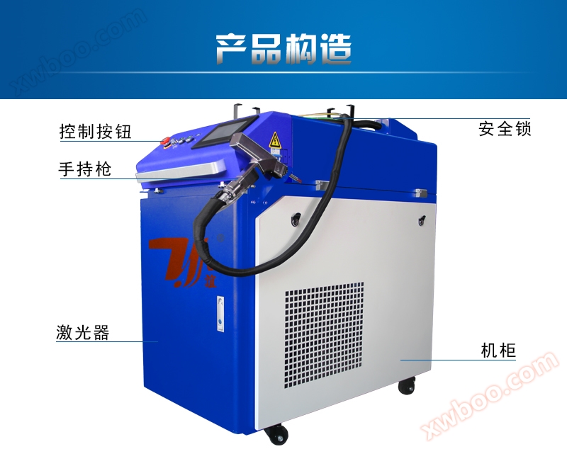 1. 手持激光焊接机配有光纤激光发生器、性能安全、稳定。